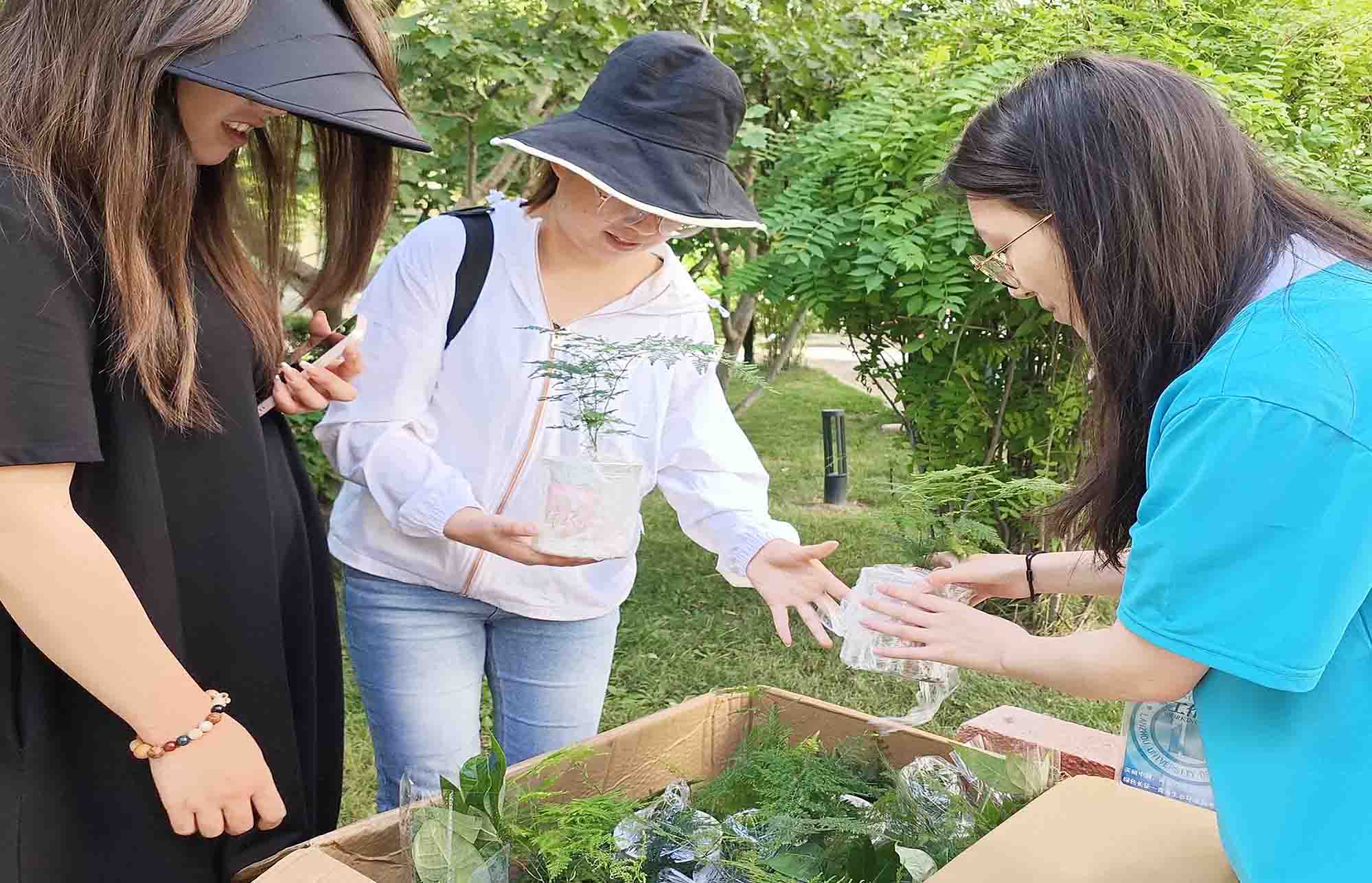 在活動現場,小區居民利用手機掃碼答卷后,獲取相應的綠植和種子盲盒作為獎勵。并結合問卷數據來了解社會大眾對生態文明建設的關注度與綠色環保理念的認識度,也為團隊后期撰寫實踐報告提供了真實的數據支撐。社區居民在回答問卷時,團隊成員也會熱心地為他們解答疑惑,同時也會宣講有關綠色環保的小知識,讓公眾更能夠理解此次綠植領養的目的。