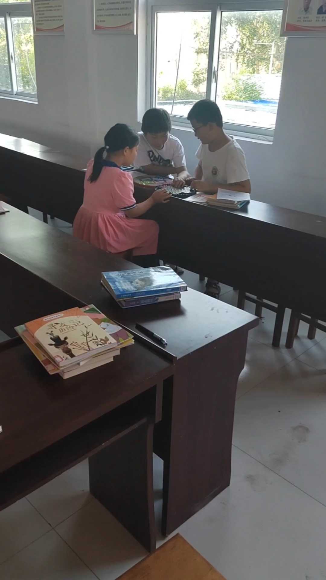 圖為團隊成員陪小朋友看書,并鼓勵小朋友們多讀書,讀好書,爭做中國未來的棟梁。