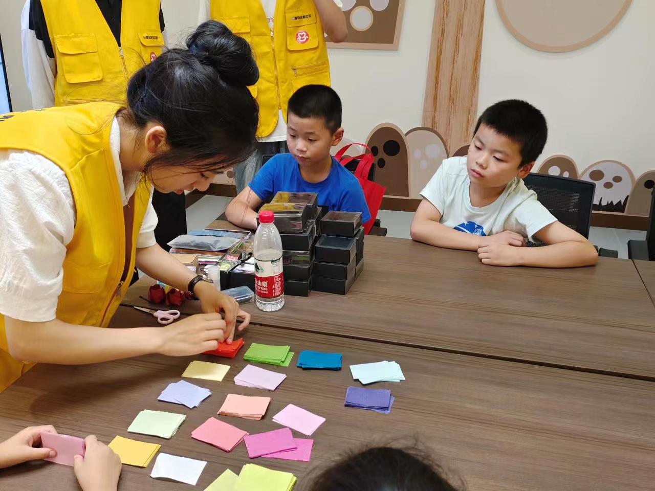 當(dāng)然,除了小童心志愿者們進(jìn)行的課程教學(xué),小童心組織還為夏令營的孩子們準(zhǔn)備了妙趣橫生的夏令營游園會。雖然由于酷暑影響,孩子們無法在室外進(jìn)行大規(guī)模游園活動,但在教室和房間內(nèi)的活動也同樣不落下風(fēng)。在游園會里各式各樣的活動精彩紛呈,有給小小朋友準(zhǔn)備的膳食寶塔貼圖,誰都可以參與的夾乒乓球、投壺、蹴鞠等等。而最為火熱的,莫過于折紙和石膏繪畫了,無論是大人還是小朋友,老師還是志愿者,都玩得不亦樂乎。在這里,每個人的童真都被釋放,所有大朋友和小朋友之間都沒有隔閡,盡情享受空調(diào)下暢快的活動。