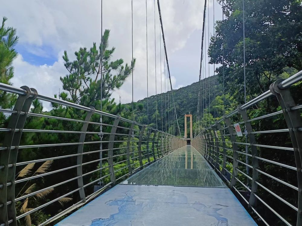 活動(dòng)議程的第三項(xiàng)是參觀整個(gè)山莊。實(shí)踐團(tuán)隊(duì)由會(huì)議室出發(fā),先是向上參觀了恐龍樂園與野生動(dòng)物救助站。之后領(lǐng)略了果園的風(fēng)采,欣賞了孔雀開屏的盛景,最后踏上了玻璃棧橋。莊園內(nèi)還有很多娛樂設(shè)施以及配套設(shè)備,團(tuán)隊(duì)的攝影師陳知行同學(xué),用他的鏡頭一一記錄了下來。在后期實(shí)踐團(tuán)隊(duì)將這些精彩的鏡頭,剪輯宣傳片,為山莊擴(kuò)大知名度,提升影響力?粗矍暗那f園,很難想象以前這里只是一片荒地,團(tuán)隊(duì)成員切身體會(huì)到了鄉(xiāng)村振興帶來的巨大變化,對(duì)人民的極大幫助。