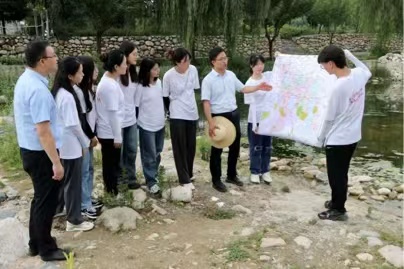在大峪新村的稻田河邊,社會實踐隊帶隊老師朗亮明為實踐隊成員講述了一堂稻田里的思政課。郎老師利用地圖生動詳細地講解了大峪新村所利用的物種間資源互補的循環農業生態學機理,“種養結合、綠色生態”的特色生產模式。稻漁共生、以漁促稻,依托水稻和水產兩大資源優勢、基于物種間資源互補,在促進水稻增產、提高農民總體收入的同時也能夠提升稻田環境質量、促進土地生態恢復。