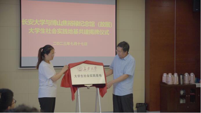 圖為長(zhǎng)安大學(xué)赴山東淄博“探數(shù)字賦能,助鄉(xiāng)村振興”暑期社會(huì)實(shí)踐隊(duì)與焦裕祿紀(jì)念館社會(huì)實(shí)踐共建授牌儀式
