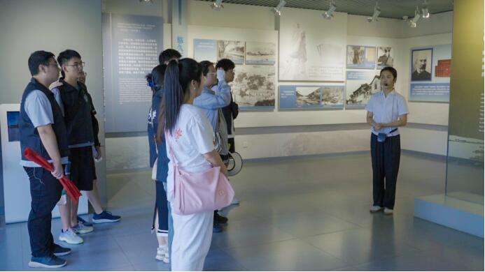 圖為長(zhǎng)安大學(xué)赴山東淄博“探數(shù)字賦能,助鄉(xiāng)村振興”暑期社會(huì)實(shí)踐隊(duì)傾聽講解員的講解