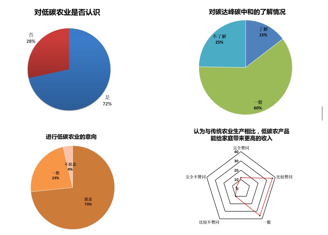 綜合分析,在實行碳達峰碳中和的目標下,各個地區,各個領域都在倡導環保,倡導低碳。但是在農業農村領域低碳知識的宣傳力度不夠,人們的環保意識不足,學習相關知識的途徑不多。但是大部分被調研者對低碳農業的未來發展還是存在著支持和信心的。