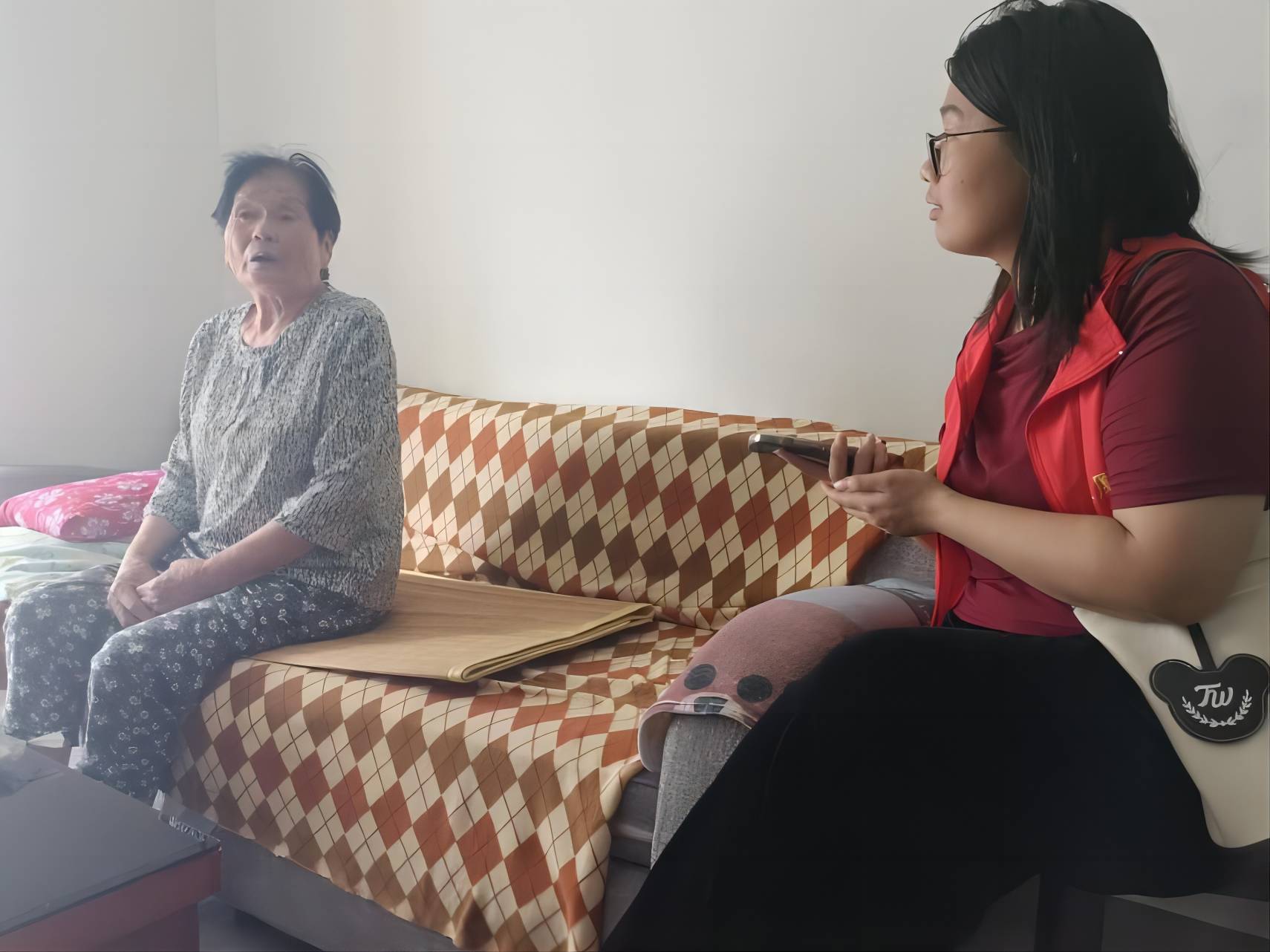 圖為在青春社區(qū)訪談即將參與適老化改造的家庭。