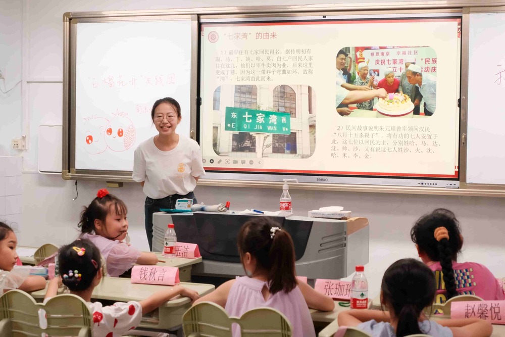 為傳承和弘揚中華民族優秀傳統文化,激發愛國主義情感,提升民族認同感和自信心,7月26日,南京師范大學教師教育學院“石榴花開”實踐團隊前往朝天宮街道七家灣社區,開展“同心‘寧’聚石榴籽,民族團結一家親”暑期社會實踐主題夏令營活動的第一期民族文化課程“我眼中的七家灣”。本期課程主題為“我眼中的七家灣”,課程聚焦七家灣與回族的聯系,具體介紹了七家灣的地名文化,旨在挖掘七家灣社區中“民族融合,文化交融”的特點,幫助孩子們感悟與探究民族文化內涵。