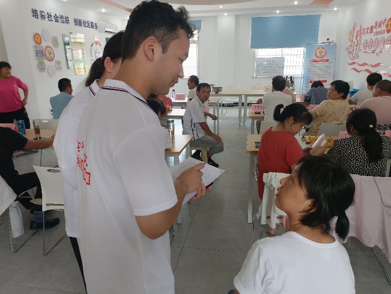 7月5日,團隊成員來到同大鎮(zhèn)人民政府附近,在指導(dǎo)老師的建議下,成員們開始向過往的人們散發(fā)調(diào)查問卷。鄉(xiāng)鎮(zhèn)上,人們早早就起來了,正是不太熱的時候,對團隊成員們來說是個好消息。開始時,成員們顯得有些生疏,并不總是使得別人愿意填寫問卷,禮貌的向每一位受訪者表示謝意。