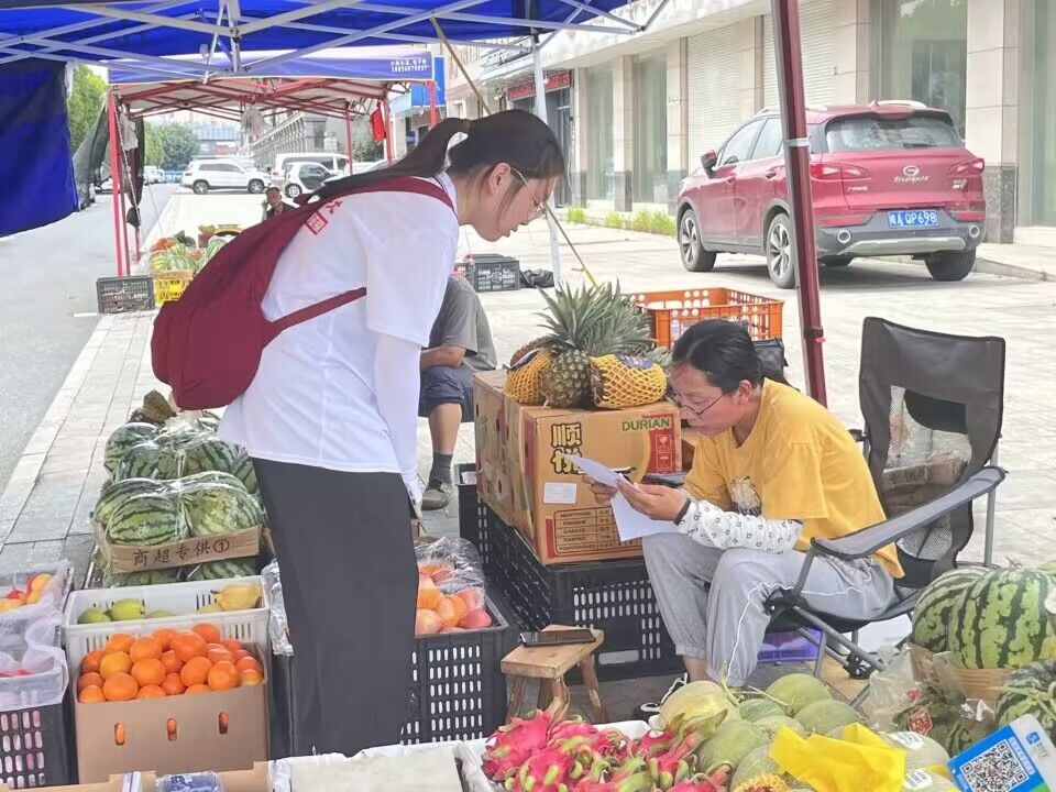 圖為實(shí)踐團(tuán)成員在同大鎮(zhèn)擺展臺(tái)進(jìn)行宣傳