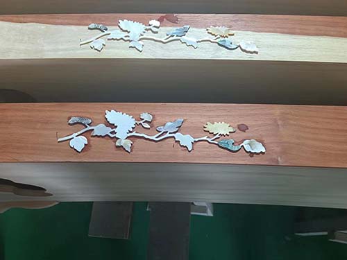 接下來,工作人員詳細介紹了古箏表面裝飾與包裝工藝,對于雕刻材料的貝殼的處理方法,貝殼的色澤在研磨前后的變化給予了詳細說明。工作人員提到,好的裝飾與包裝不僅僅能起到美觀作用,也能作為體現古箏特色的重要特性。