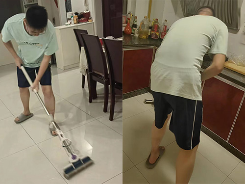 還有的同學在家幫家長打掃起了屋子。戚震宇同學覺得拖地是一項看似簡單卻需要耐心和細心的家務工作。在拖地的過程中,他深刻體會到了勞動的辛苦和重要性:拖地不僅僅是為了清潔地面,更是一種對生活的尊重和對自己的關愛。同時與他一樣在家幫父母拖地的林漢同學認為家務勞動對他來說是一種必要的責任和角色扮演。他體會到在家庭中,每個人都需要貢獻一份力量來維持家庭的正常運轉和舒適生活。這是每個人作為家庭成員的責任之一。