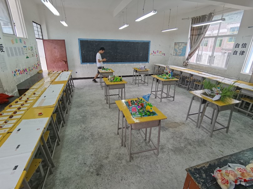南京財經大學藝術設計學院藝途童行支教隊在云南紅河哈尼族彝族自治州元陽縣詩妤希望小學度過了11天充滿藝術創意和熱情的理想家園課程。在漫長的探索與創作中,孩子們和隊員們一同筑起了理想家園的夢想之橋。在這個特殊的時刻,六個小組的作品在教室里進行了一場別開生面的策展展覽,為整個支教活動畫上了完美句號。