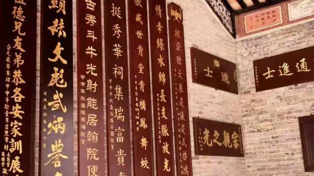 圖為中堂鎮潢涌村黎氏大宗祠的牌匾展示圖
