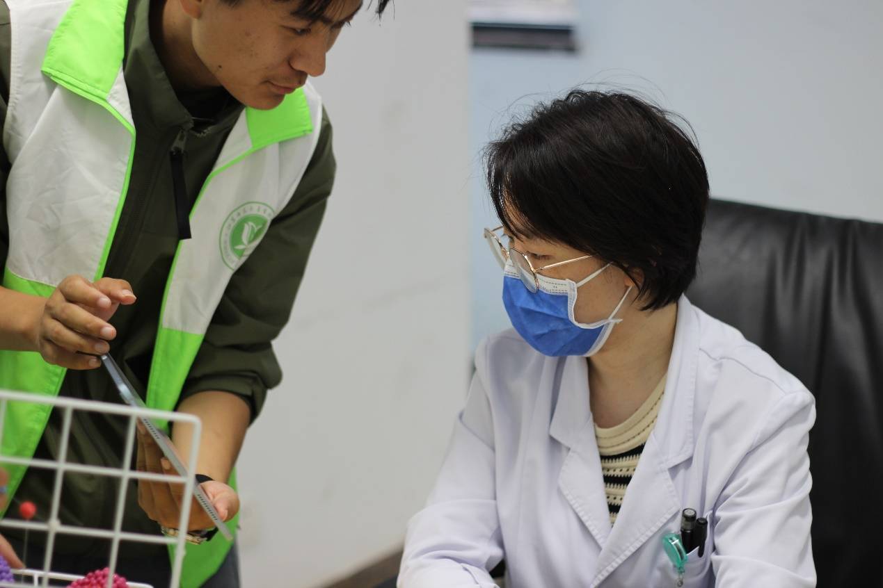 圖為團(tuán)隊(duì)成員向肺癌患者展示團(tuán)隊(duì)研發(fā)的肺癌檢測(cè)軟件。