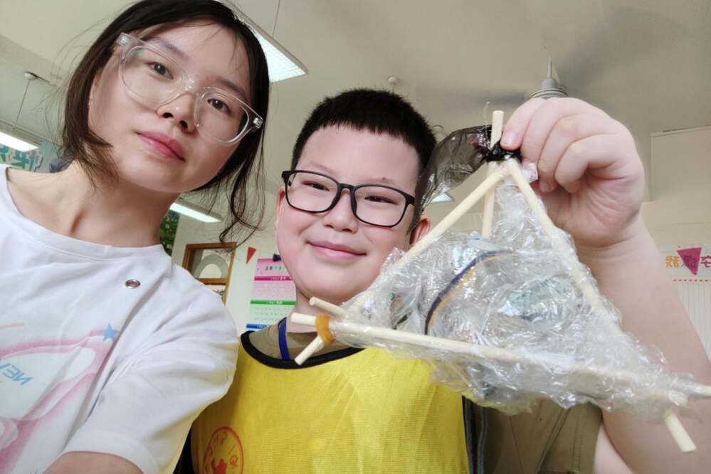 圖為已經將裝置成功制作完畢的小朋友 供圖來源:郭曉
