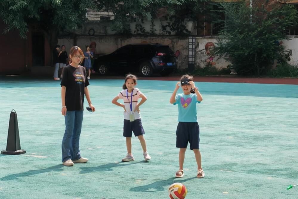 圖為小朋友在蒙眼踢球。供圖來(lái)源:郭曉