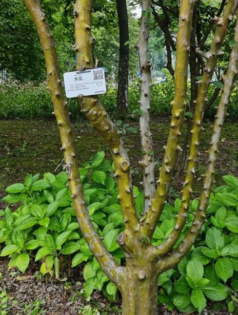順著當歸路,走進紫藤花廊,跨過太極橋,來到芙蓉河東岸百合路上可以看到許多高大的樹木,他們不僅具有觀賞價值也屬于中草藥。