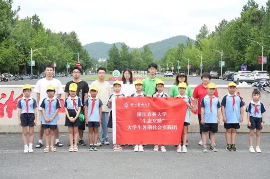 中共十八大以來,在習近平新時代中國特色社會主義思想指引下,中國堅持綠水青山就是金山銀山的理念,堅定不移走生態優先、綠色發展之路。浙江農林大學“生態互助”暑期社會實踐團于7月9日在浙江農林大學開展活動,帶領11名來自西天目小學的小學生們游覽果木園、森林昆蟲病理館、中藥館,賞東湖風光,學習智能實驗樓竹子文化,創作生態主題T恤等等活動,旨在通過沉浸式感受自然環境、學習生態環保知識的過程中,潛移默化地宣傳節能環保意識,幫助孩子們了解綠色低碳內涵,同時督促自身環保行為,進一步貫徹落實習近平生態文明思想。
