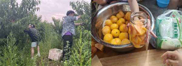 在助農(nóng)方面,實(shí)踐團(tuán)成員隨徐敏安爺爺來(lái)到山上摘桃、賣桃,感受到了農(nóng)業(yè)勞動(dòng)的不易。此外,他們還與當(dāng)?shù)卮迕褚黄鹬谱髁它S桃罐頭,為農(nóng)產(chǎn)品加工提供支持。