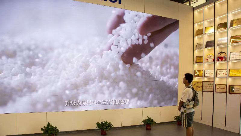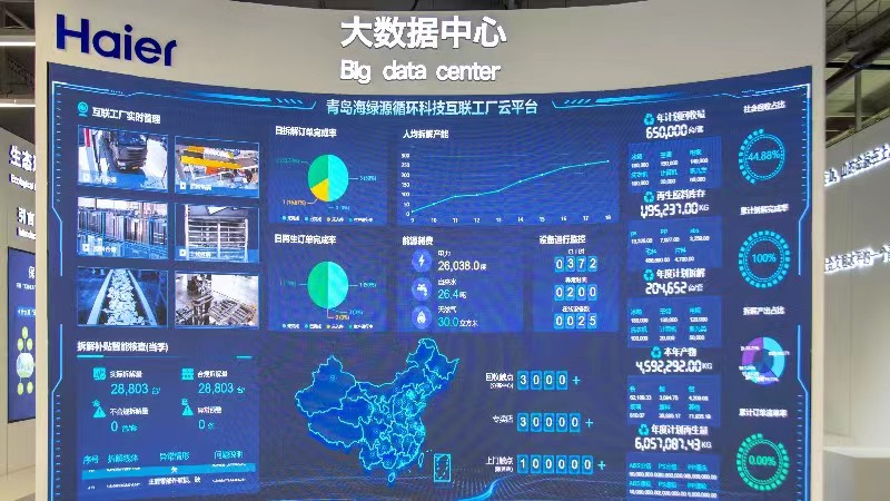 進入產(chǎn)業(yè)園主樓大廳,實踐隊隊員首先觀看了視頻宣傳片,了解海爾綠色再循環(huán)集團的發(fā)展歷程,并對其綠色回收系統(tǒng)有了初步的了解。隨后,在與相關技術人員進行交流的過程中,實踐隊隊員們了解到其在實現(xiàn)雙碳發(fā)展和高效運行方面做出的舉措,如創(chuàng)建“碳中和”綠色工廠,創(chuàng)建互聯(lián)互通區(qū)塊鏈追溯體系等等。最后,實踐隊隊員就企業(yè)對“雙碳”目標后續(xù)發(fā)展規(guī)劃問題與工作人員展開討論并合照留念。