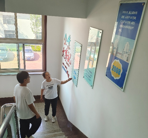 圖為負(fù)責(zé)人向?qū)嵺`隊(duì)員講述公司發(fā)展史