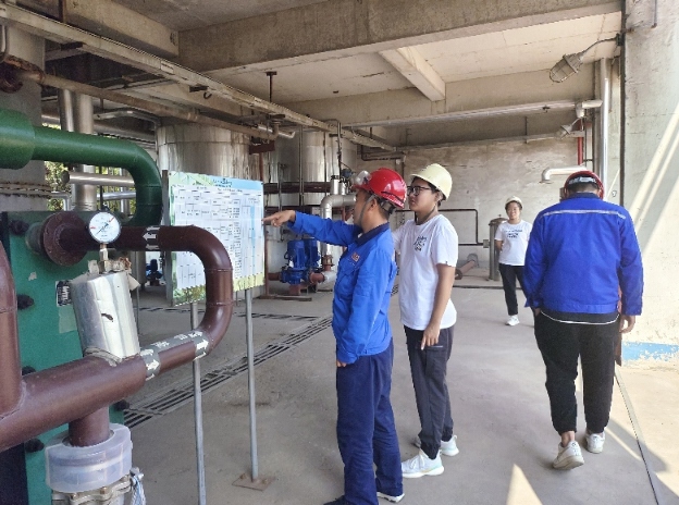 圖為負(fù)責(zé)人向?qū)嵺`隊(duì)員講述生產(chǎn)流程