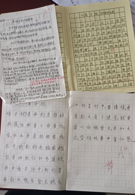 特色課程上,四名支教老師開設弟子規課程,教同學們學習相關禮儀知識,學會尊重父母,明白孝順的重要性;在朗誦課和演講課上學習朗誦和演講技巧,提高同學們的表達能力,幫助學生提高自信心;在唱紅歌課上,培養愛國愛黨情懷;開設硬筆書法課,規范學生的書寫。