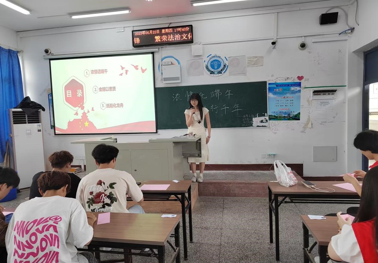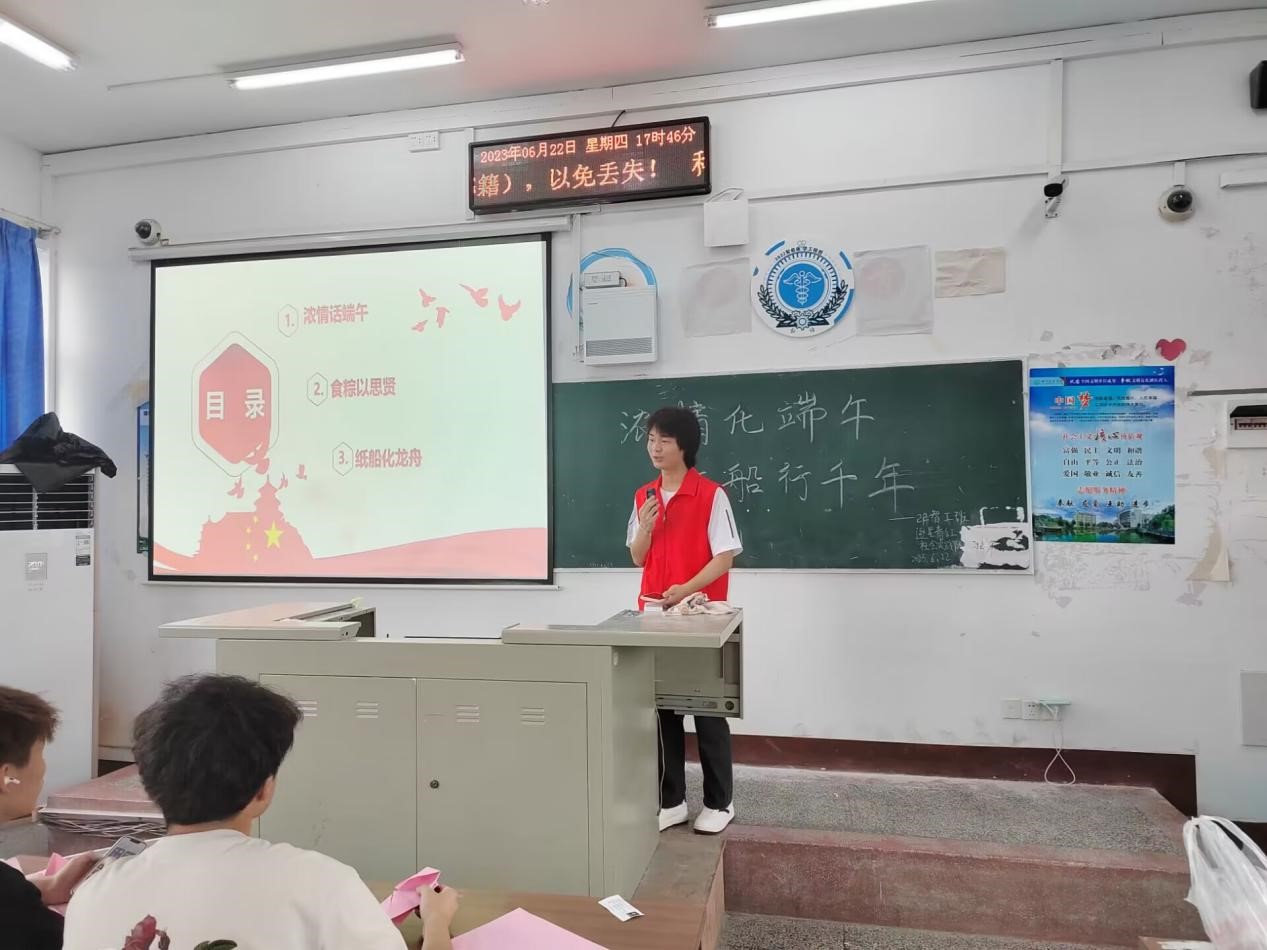 多彩大學生網十堰5月22日電(通訊員:王夢婷)為永遠銘記“母親船”,弘揚紅船精神。6月22日湖北醫藥學院“逐星青紅”志愿服務隊連同2022智能醫學工程班在5509教室開展“濃情話端午,紅船行千年”端午活動。