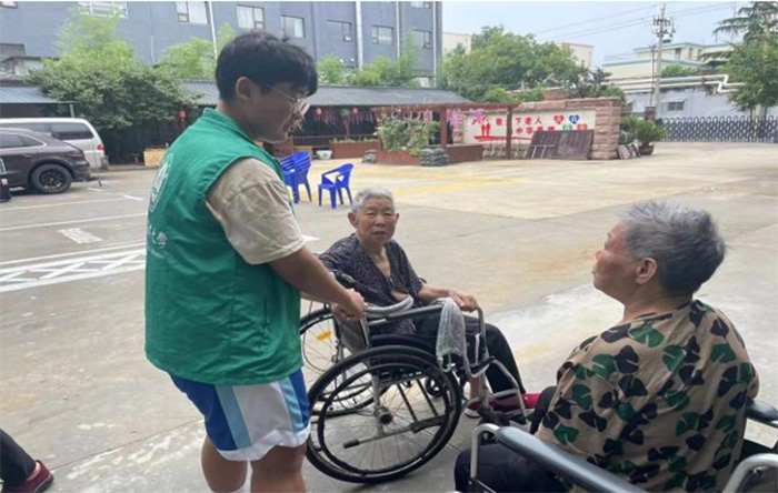 導語:2023年7月13日,來自山東農業大學大學的“與愛同行”志愿服務隊,前往泰安市泰山區泰山老年公寓,開展一天的社會實踐活動。志愿者們陪同老人做操鍛煉身體,為老人發放水果,陪老人聊天,為老年公寓打掃衛生,用實際行動傳遞溫暖與關愛。