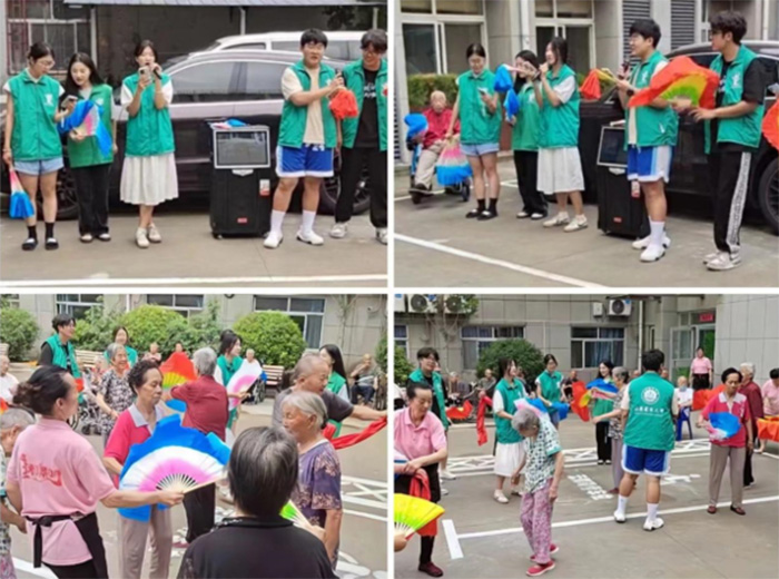 清晨的陽光透過樹葉間的縫隙灑在泰安的大地上,當地老年公寓迎來了一群特殊的客人——來自山東農業大學大學的志愿者們。“大家早上好!”這群青年學子是“與愛同行”志愿服務隊的成員,懷揣著對老人的深深敬愛之情和對社會實踐的渴望,他們希望用自己的愛心和行動,為老年公寓的老人們帶去一份溫暖與關懷。志愿者們親切地和每位老人握手,并引導他們一同來到操場上進行晨間操。晨風拂面,老人們的步伐雖然有些緩慢,但每一次揮動的手臂都散發著堅毅和歡愉。志愿者們則身先士卒,用力帶動著老人們的動作。年輕與晚年在操場上交織成一幅和諧的畫面,融合著活力與滄桑。志愿者們一到達公寓,便迅速展開了活動。他們首先陪同老人們進行晨間操,鼓勵老人積極參與,鍛煉身體,增強體質。在操場上,年輕的志愿者與老人們一同做操,笑聲與歡聲交織在一起,營造出愉悅的氛圍。