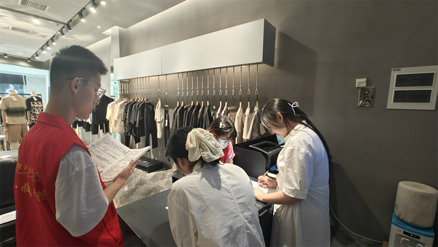 圖為我們隊員預先對路人進行有關“三孩政策”的問卷調查。多彩大學生網通訊員 尚越 攝