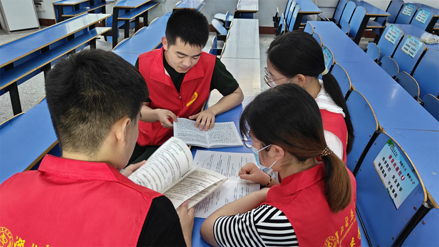 圖為我們隊長在湖北醫藥學院五號樓5117教室向全體隊員進行暑期社會實踐啟動儀式。多彩大學生網通訊員 盧耀華 攝