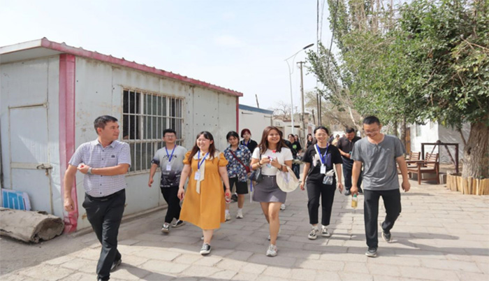調研家鄉變化,傳承扎根精神。“大愛吾疆”實踐部與阿熱吾斯塘村和薩克薩克街道的工作人員開展走訪調研家鄉變化。在調研中了解到,自治區教育廳駐阿熱吾斯塘村工作隊積極回應群眾的民生訴求,新建村級陣地以及文化活動陣地等7000余平方米,筑路修渠、架設路燈,建設安居富民房,積極幫助群眾解決教育、就業、住房、社保以及勞動力短缺等實際問題。薩克薩克街道動員社區干部和黨員,將老民房統一規劃,改造成具有少數民族民俗特點的小客棧、小茶房,不僅為來庫車旅游的外地游客提供旅游體驗少數民族生活的好去處,也為當地居民提供了就業增收的平臺。在感受新疆基層干部“一線察民情,聚力解民憂”的扎根奉獻精神中更加堅定了助力家鄉鄉村振興建設的信心。