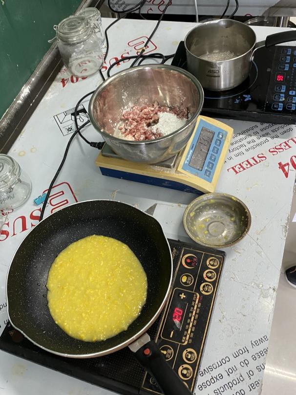 在中國計量大學生命科學學院張擁軍教授和賈振寶副教授的悉心指導下,團隊成員集思廣益,經過了數輪推敲討論、制作試味后,設計出了響鈴菌菇卷、菌菇淀粉腸、冰皮菌菇菓、菌菇果凍以及黑米菌菇粥等一系列以菌菇為主體的預制菜產品,并在出發前一天精心制作好了產品樣品帶到了會議現場。