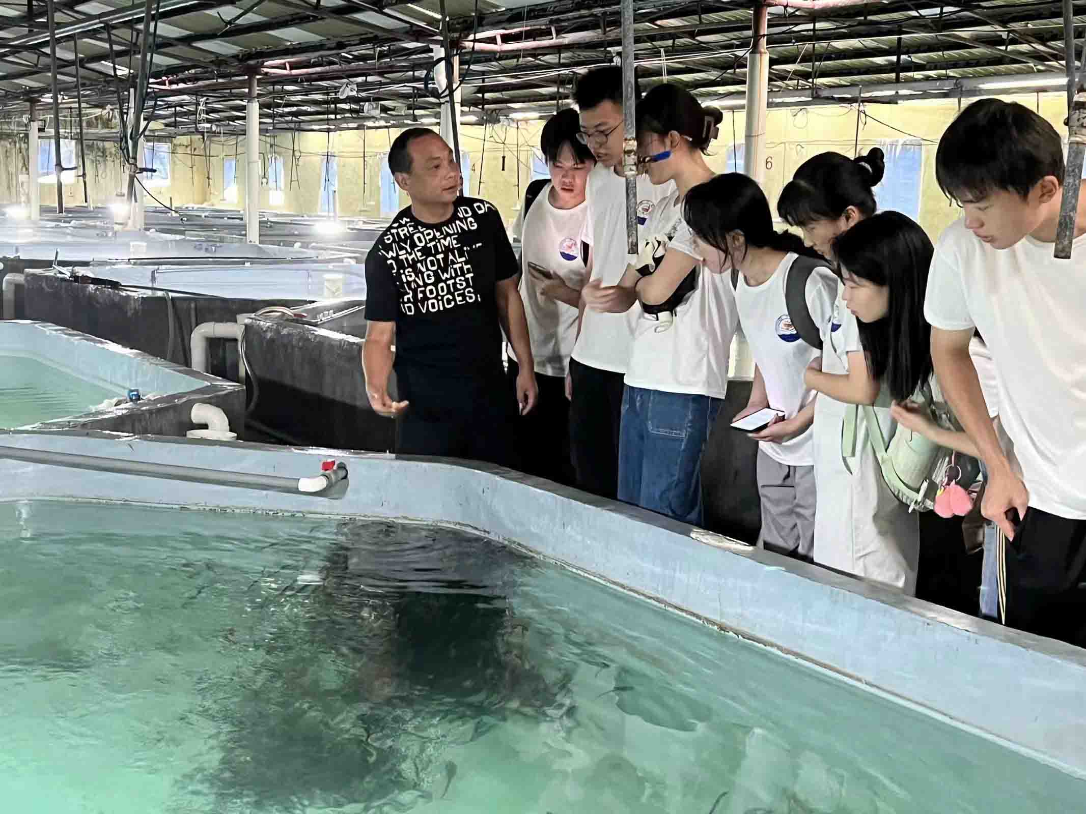 方木平先生帶領(lǐng)實(shí)踐隊(duì)隊(duì)員參觀(guān)了養(yǎng)殖車(chē)間,介紹了海馬、石斑魚(yú)、珍珠龍躉等水產(chǎn)品的養(yǎng)殖概況。隨后,實(shí)踐隊(duì)與方木平先生圍繞水產(chǎn)養(yǎng)殖技術(shù)、養(yǎng)殖經(jīng)驗(yàn)、污水處理等方面展開(kāi)了座談會(huì)。會(huì)上,方木平先生表示:“逸昌水產(chǎn)高度重視優(yōu)質(zhì)育苗技術(shù)的研發(fā),目前的品種可以做到耐低溫、生長(zhǎng)速度快、抗病力強(qiáng)三個(gè)優(yōu)點(diǎn)。此外,逸昌水產(chǎn)積極搭建校企合作平臺(tái),與集美大學(xué),廈門(mén)大學(xué)均有密切合作。”