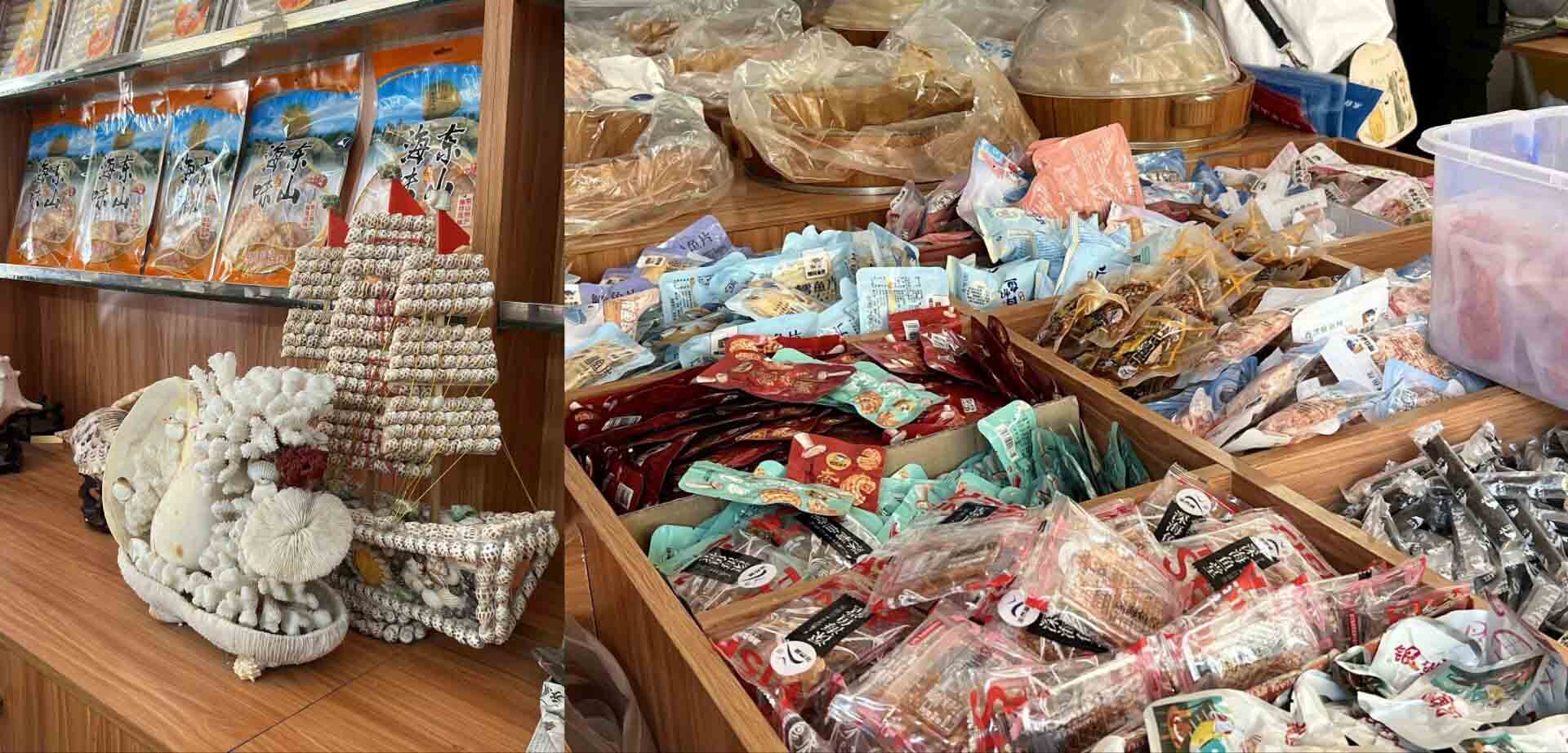 8號上午9:00,實踐隊前往銅陵鎮商業街,參觀當地水產干貨店鋪,在取得當地商鋪老板的準許后,隊員們品嘗不同品類的海鮮干品,并在店鋪老板的介紹下了解不同種類的水產干品,例如魷魚干、巴浪魚干、紫菜等多種干品。同時,店鋪老板也向我們分享了他們的銷售渠道以及銷售狀況,提到了要結合旅游產業以及借助電商經營模式,將干品銷售給游客并傳播至全國各地。