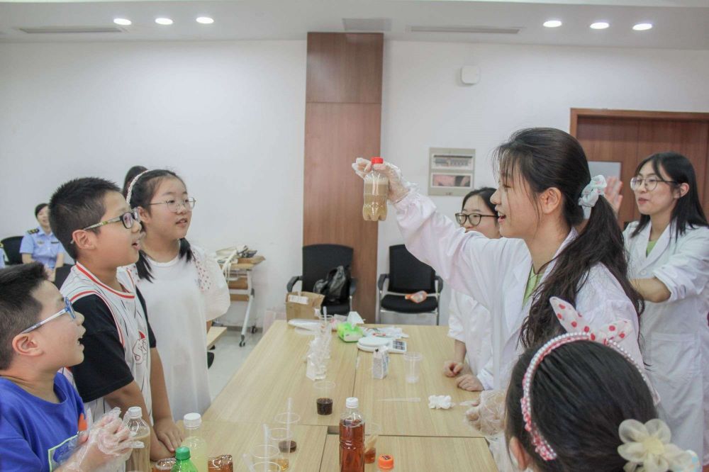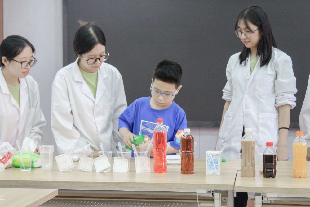 實踐隊通過設(shè)計科學(xué)實驗“知·食”互動課堂增加知識的體驗感與獲得感,將食品安全問題通過互動小實驗的形式更加直觀地展現(xiàn),化概念宣講為實物體驗。實踐隊帶領(lǐng)小朋友們走進(jìn)大學(xué)校園,零距離參觀食品檢測實驗室,親身參與科普小實驗,收獲食品安全干貨知識。