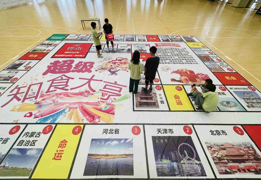 實踐隊員精巧設(shè)計,重新定義了大眾熟知的大富翁桌游棋盤面規(guī)則內(nèi)容。參與者置身于實體的大型棋盤中,創(chuàng)新地以己為棋行進(jìn)“環(huán)游”,在學(xué)習(xí)豐富食安知識的同時,領(lǐng)略不同地域的特色美食,并結(jié)合全民亞運的主旨,以傳統(tǒng)運動等形式,使參與者親身體驗“食動平衡”實踐學(xué)習(xí),完成一場微型地理、文化“中國行”。全過程以寓教于樂的形式,使孩子們自然地接觸到食品安全與亞運會的有關(guān)知識。