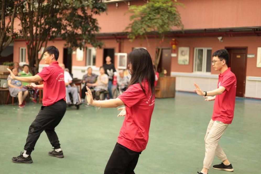 下午,實踐團成員帶著才藝再次出發(fā)前往健樂養(yǎng)老院。經過兩天的才藝準備,成員們已經迫不及待為老人們展示成果。當音樂響起,太極文化向外傳播,成員們?yōu)槔先藗冋故咎珮O拳,介紹太極文化,老人們都紛紛鼓掌。接著,團隊成員和老人們一起唱革命戰(zhàn)歌,一起跳舞,一起做游戲,為老人們平淡的一天增添了些許的樂趣,讓老人們感受到關懷。