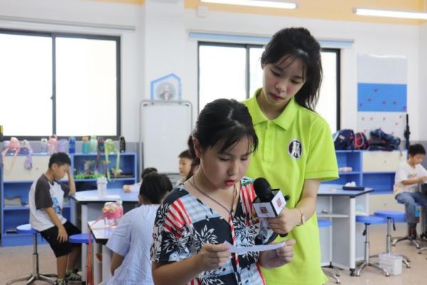 圖為實踐團成員在舟山小學教學財經(jīng)新聞課程