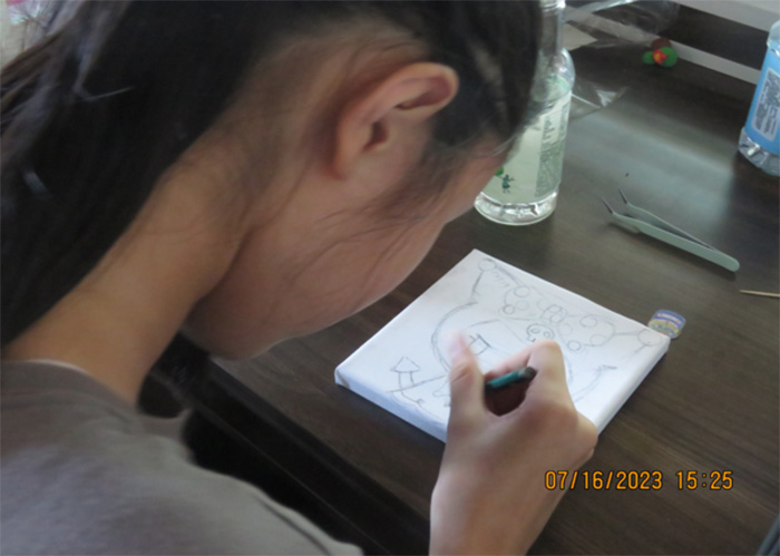 圖為手工課上學生繪制紙漿畫圖案 拍攝:高卿