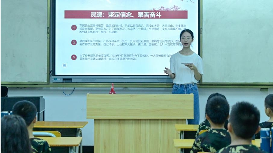 圖|“金色麥田”團隊成員利用課堂形式宣講“井岡山精神”