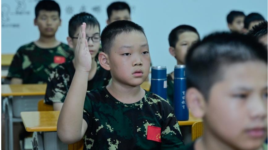 課程尾聲,孩子們深刻學(xué)習(xí)了毛澤東詩詞《西江月·井岡山》,并在宣講團成員的帶領(lǐng)下高聲齊讀井岡山精神的四個具體內(nèi)涵:“堅定執(zhí)著追理想、實事求是闖新路、艱苦奮斗攻難關(guān)、依靠群眾求勝利”。孩子們的吶喊充滿了力量和希望,高亢而鏗鏘,仿佛一支昂然的樂章,表達(dá)了孩子們對井岡山精神的堅定信仰。