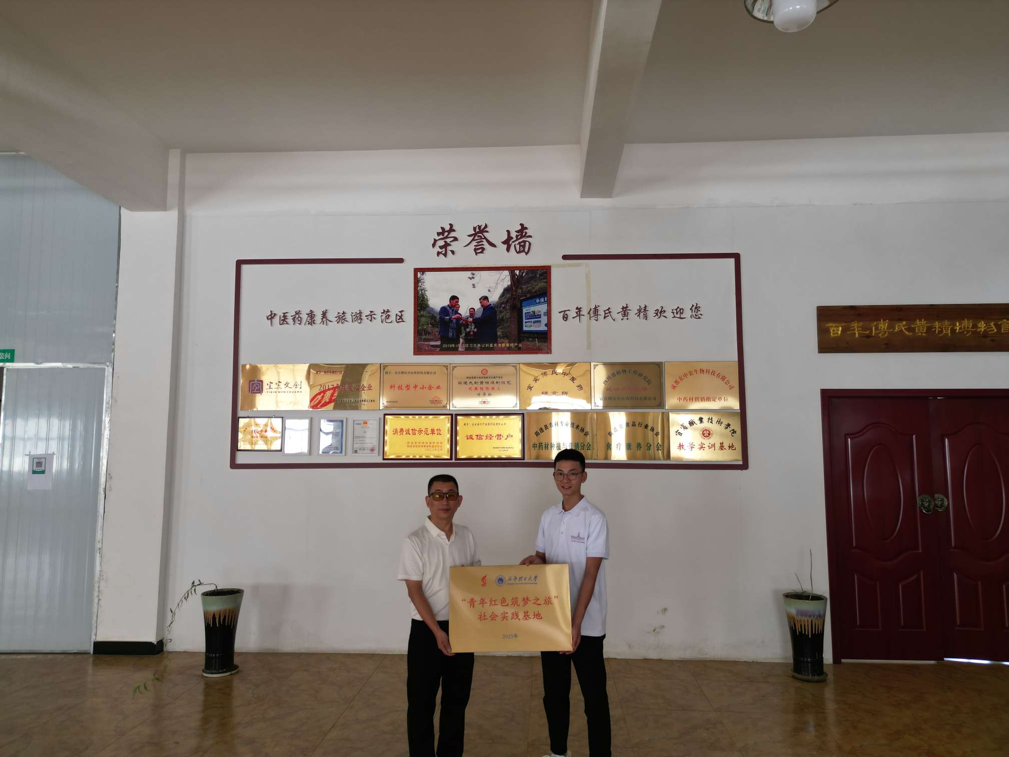 參觀完博物館,大家來到了會(huì)議室,進(jìn)行“青年紅色筑夢(mèng)之旅“的協(xié)議簽訂。帶隊(duì)老師李穎同筠連縣九制黃精代表性傳承人、筠連縣人大代表、百年傅氏傅華松簽訂產(chǎn)學(xué)研共建協(xié)議,并進(jìn)行掛牌儀式。雙方表示中藥材的發(fā)展離不開青年一代,鄉(xiāng)村振興更需要青春的力量。