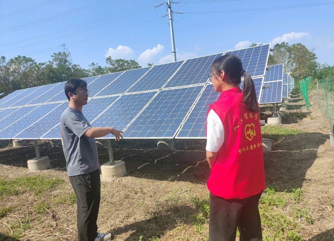 參觀光伏產業基地,科技點亮鄉村振興9月2日,服務隊成員走在壽縣壽春鎮古城村的鄉間小路上,一組緊接著一組、一排緊挨著一排,平地上延伸的光伏發電板像湖泊一樣波瀾壯闊,這里就是壽縣農業年產值2500萬元的光電生態產業園。光伏產業園的部分收益也會用于鄉村道路建設,加快農村能源轉型發展助力鄉村振興。