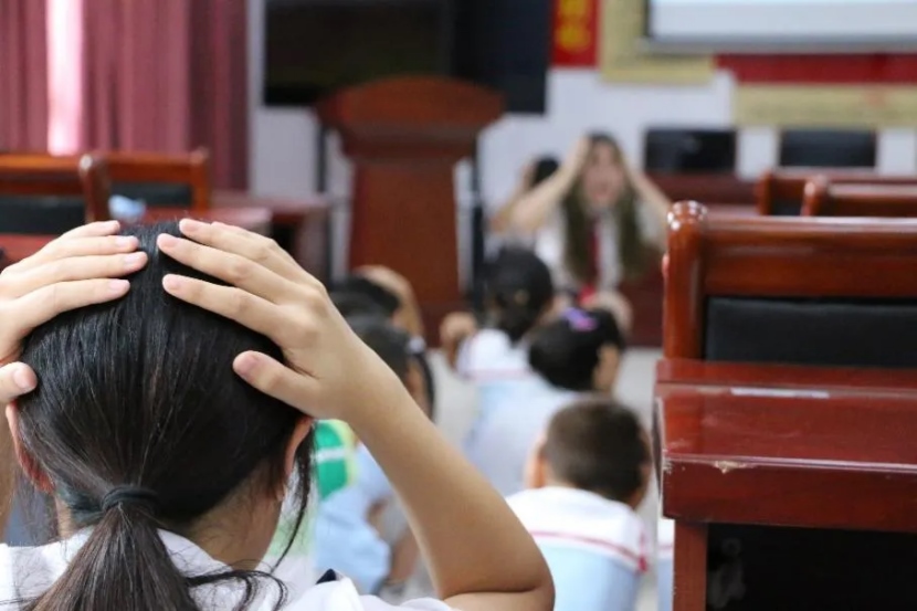 圖為實(shí)踐隊(duì)員展示心肺復(fù)蘇