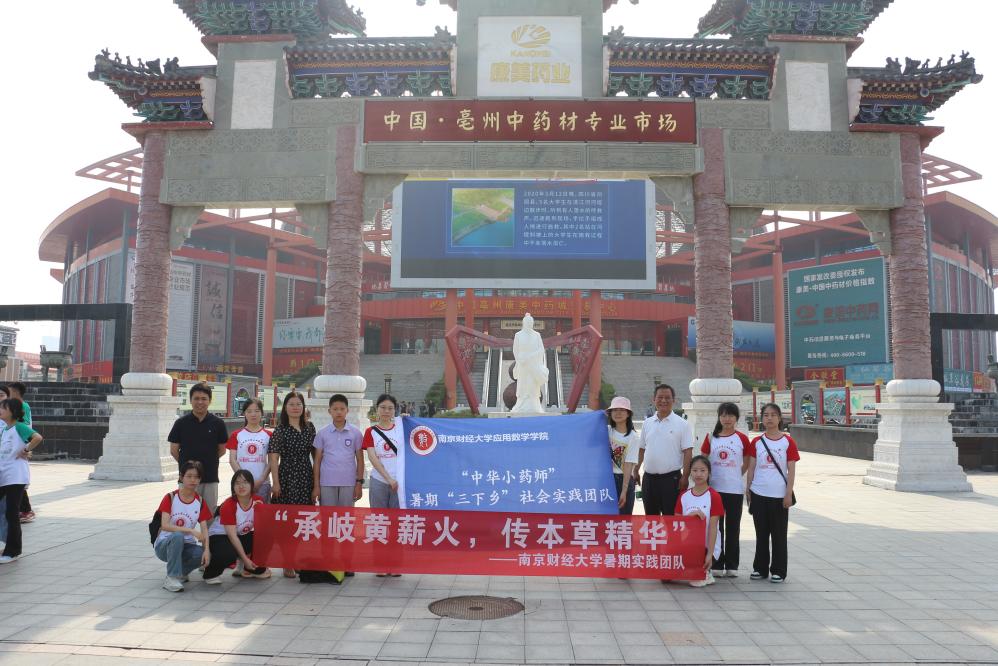中醫藥文化作為中華優秀傳統文化的重要組成部分,是中醫藥事業的根基和靈魂,在人類發展的歷史長河中留下了寶貴的文化瑰寶。黨的二十大報告指出,要“堅持人民至上、生命至上”,“推進健康生活建設”“把保障人民健康放在優先發展的戰略位置”“促進中醫藥傳承創新發展”。為深入了解中醫藥文化,進一步推動中醫藥文化在青少年群體中的普及和推廣,助力中醫藥事業復興,賦能城市轉型發展,6月30日至7月1日,南京財經大學應用數學學院暑期社會實踐“中華小藥師”團隊赴安徽省亳州市開展以“承岐黃薪火,傳本草精華”為主題的暑期社會實踐。安徽省亳州市政協研究室主任紀恒慶、亳州晚報社黨委書記、總編輯許祝生、南京財經大學應用數學學院黨總支副書記孫曉飛、團委書記李攻明以及實踐團隊七名學生參加本次實踐活動。