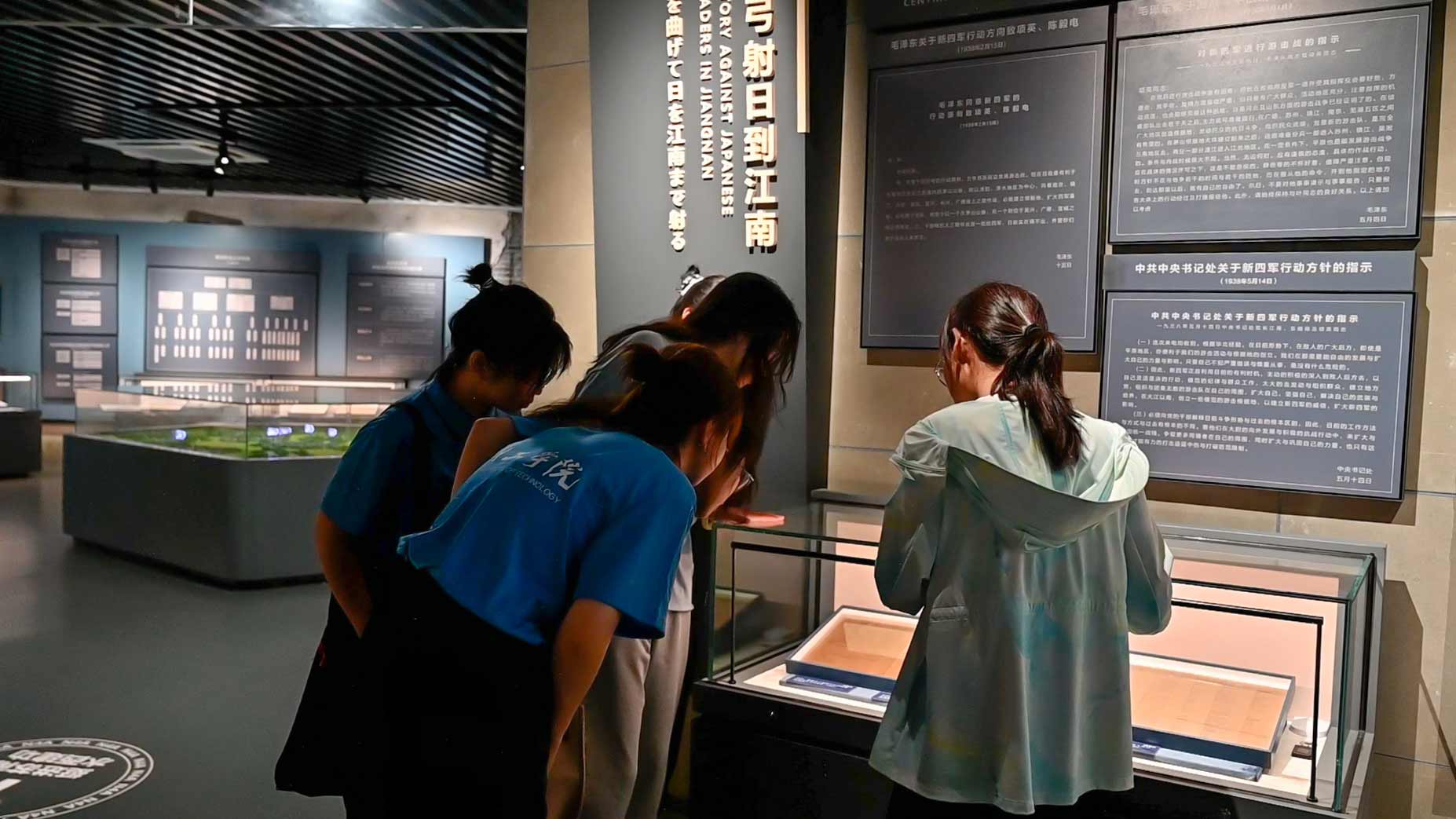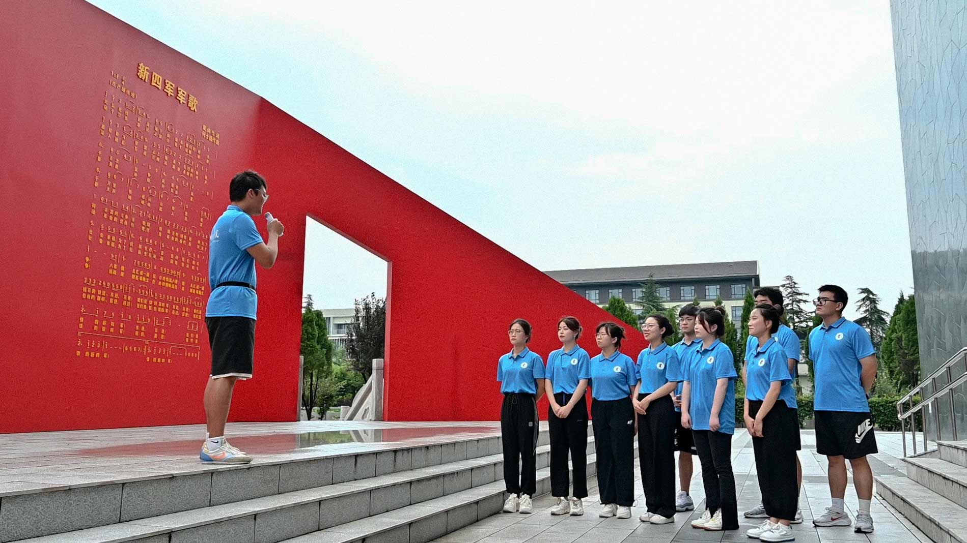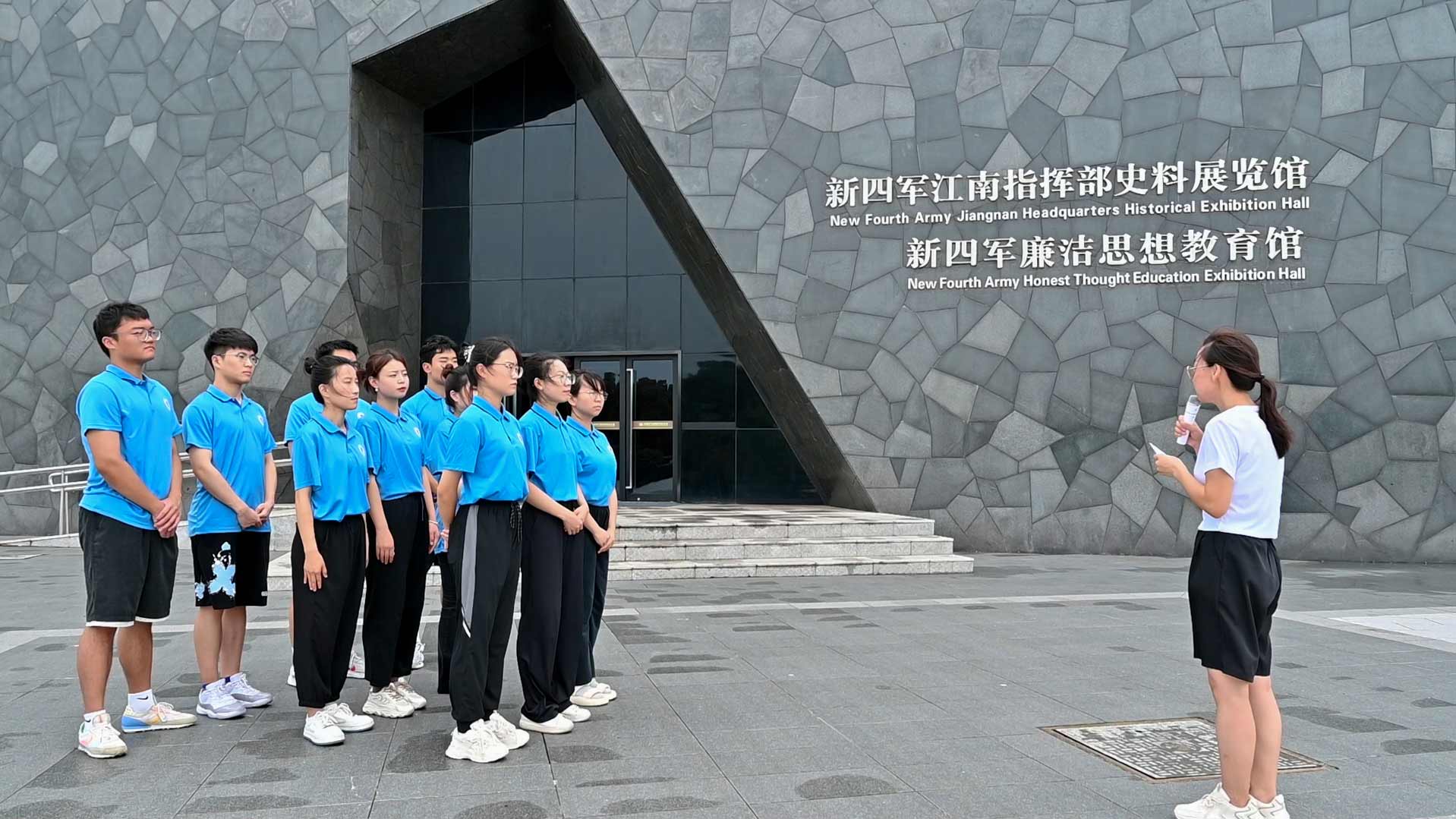 圖為團隊老師在新四軍江南指揮部紀念館門口為同學們開展現場教學。多彩大學生通訊員張若妍供圖