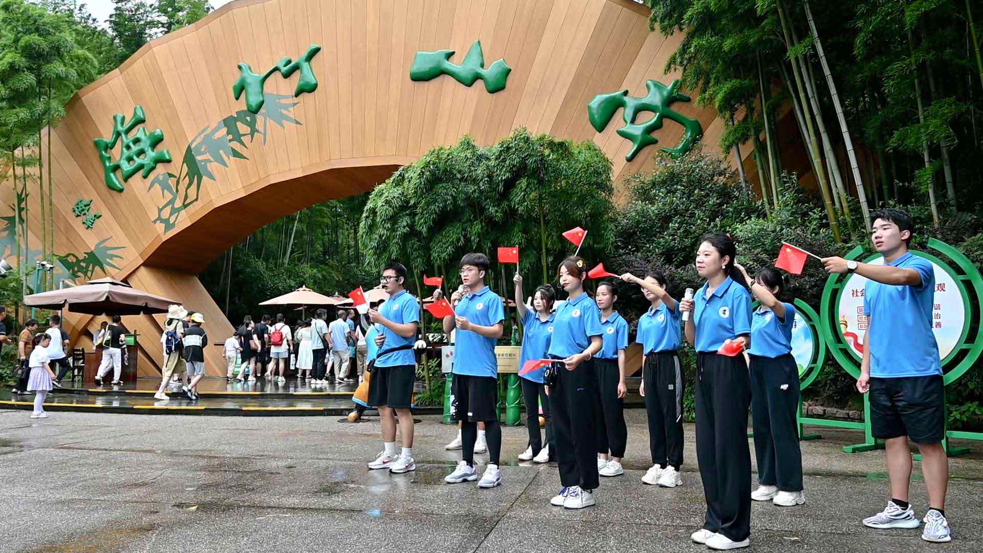 圖為團隊成員們在南山竹海景區門口進行《我和我的祖國》快閃活動。多彩大學生通訊員張若妍供圖