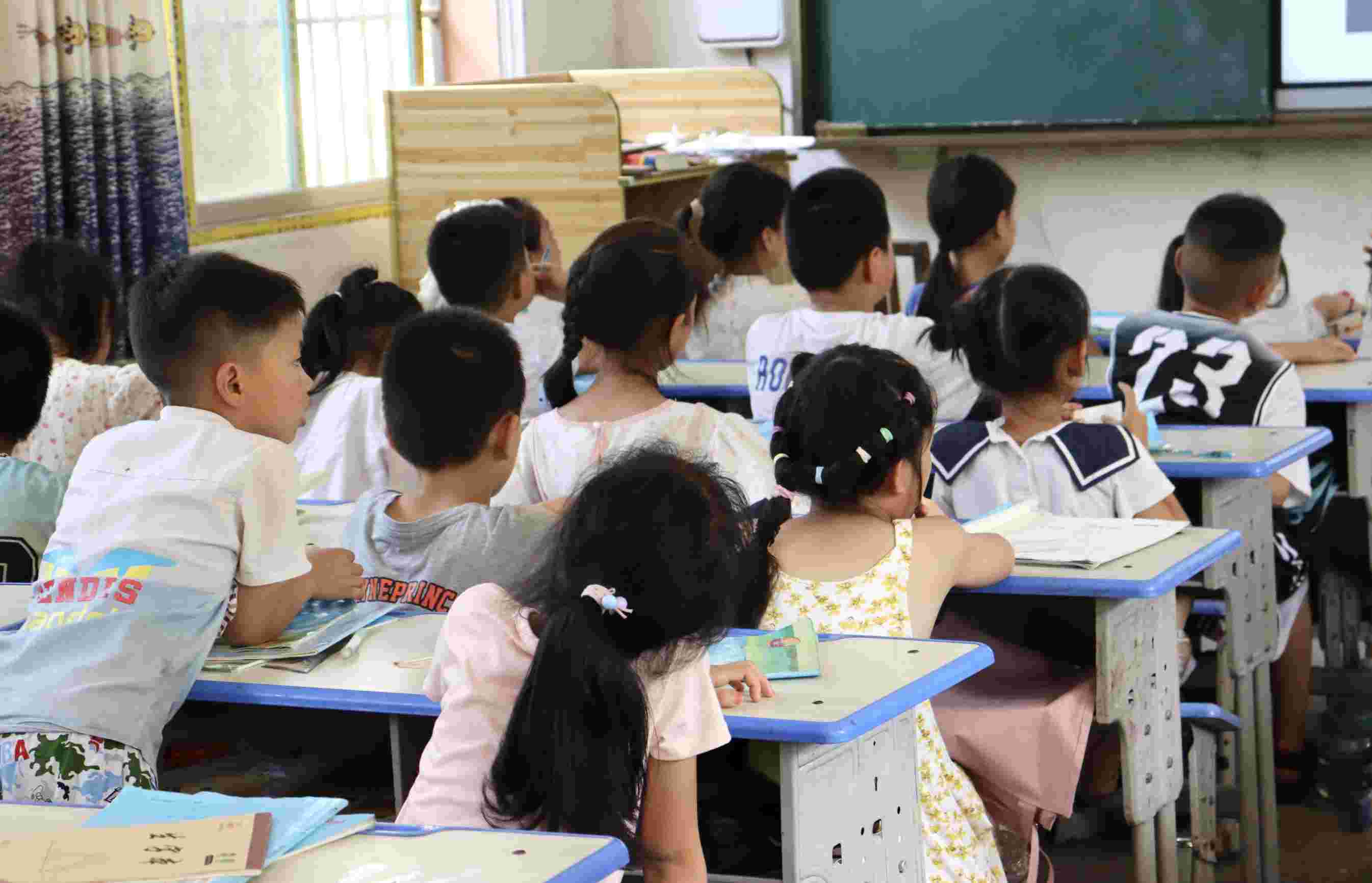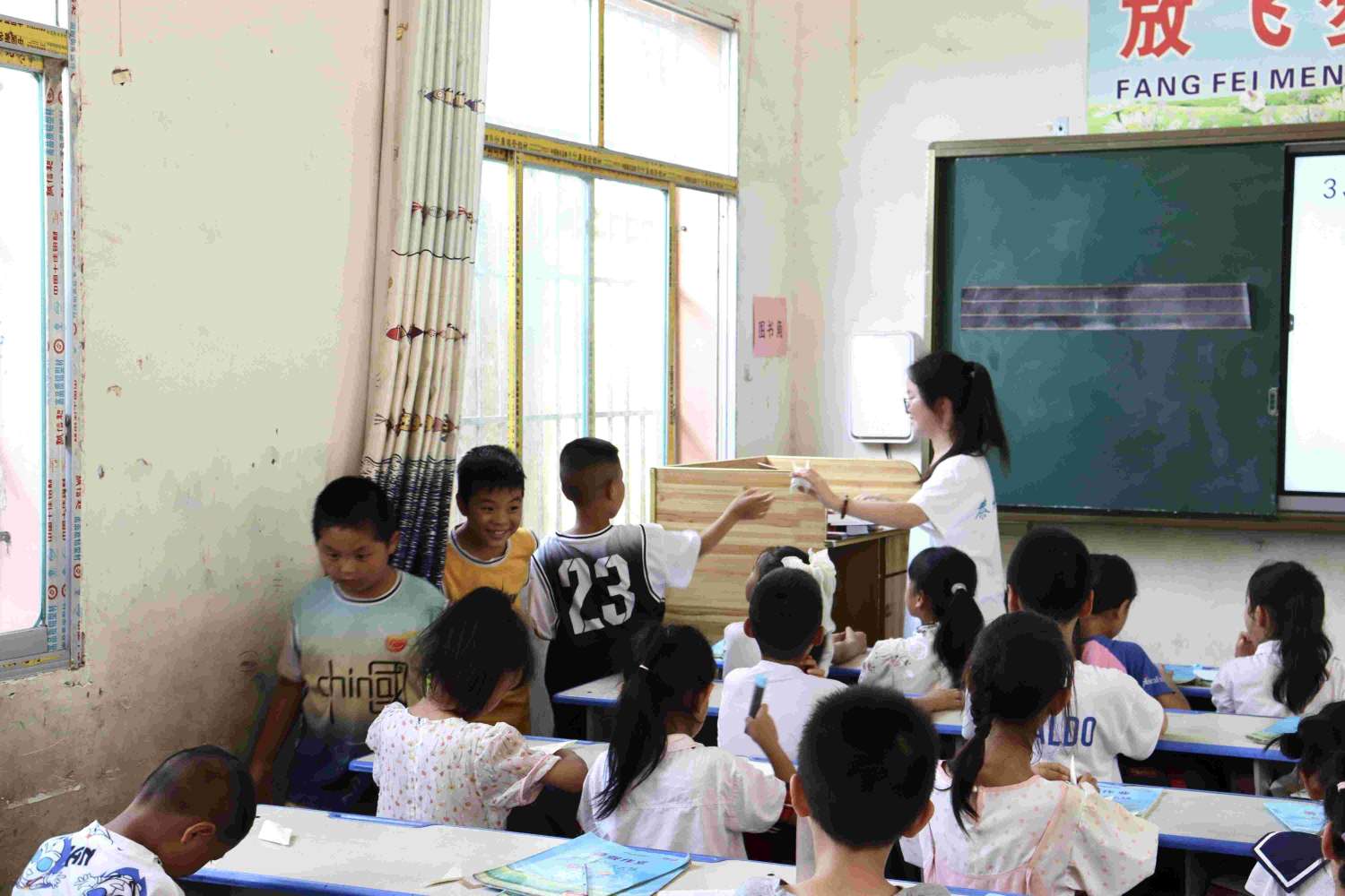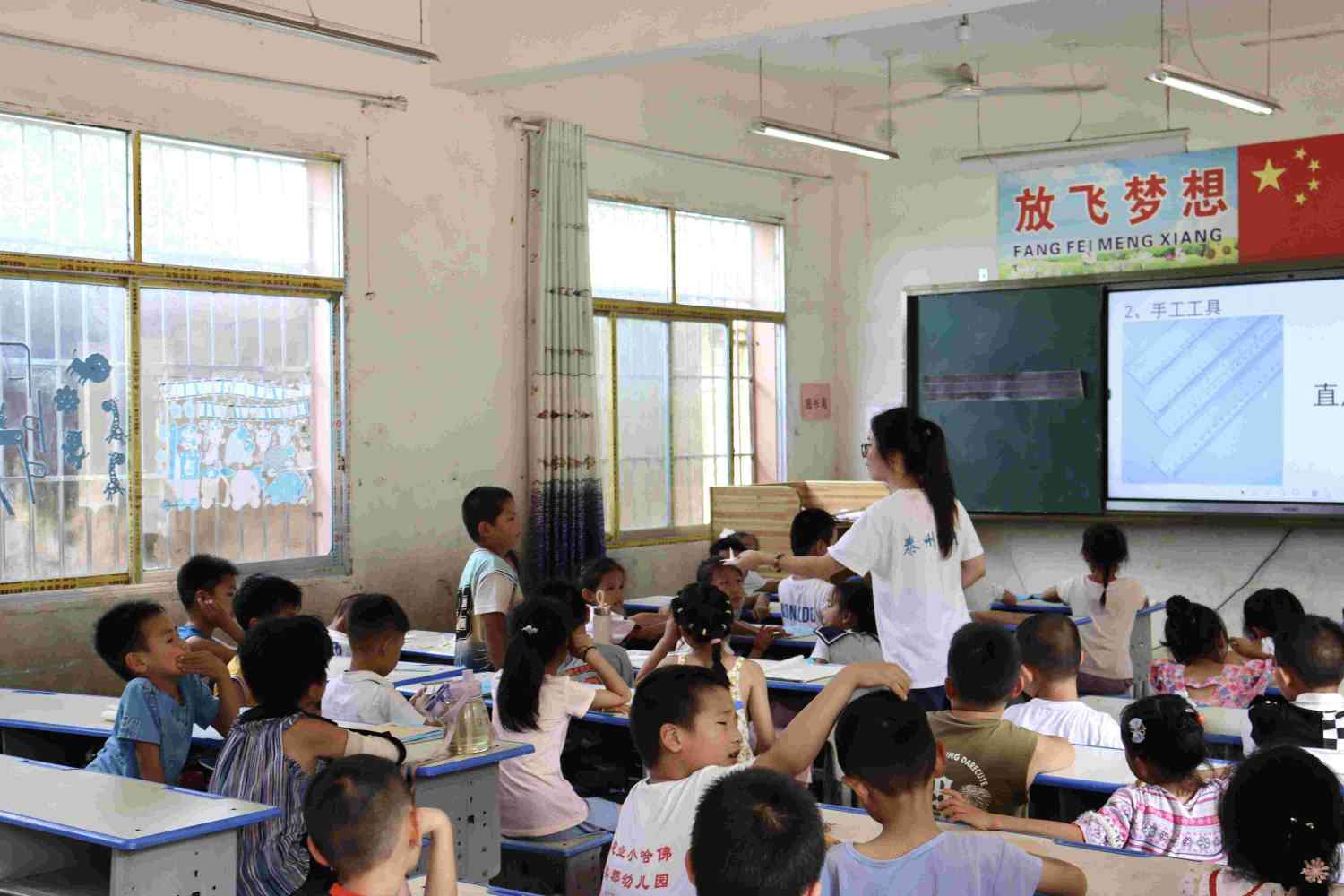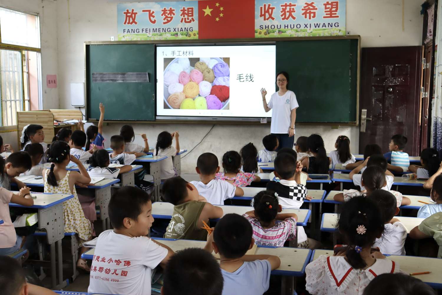 圖為支教地點(diǎn)教室,同學(xué)積極回答手工問題,課堂氛圍活躍。