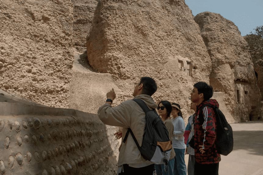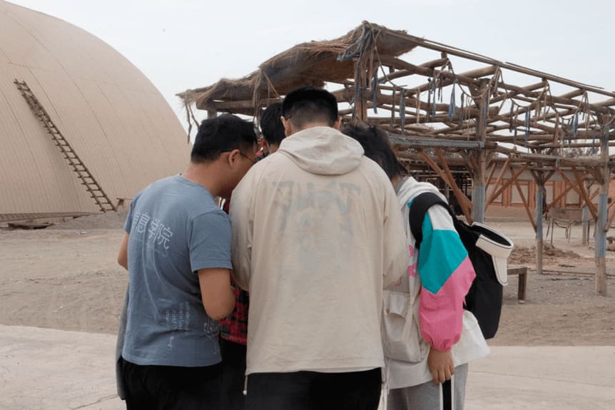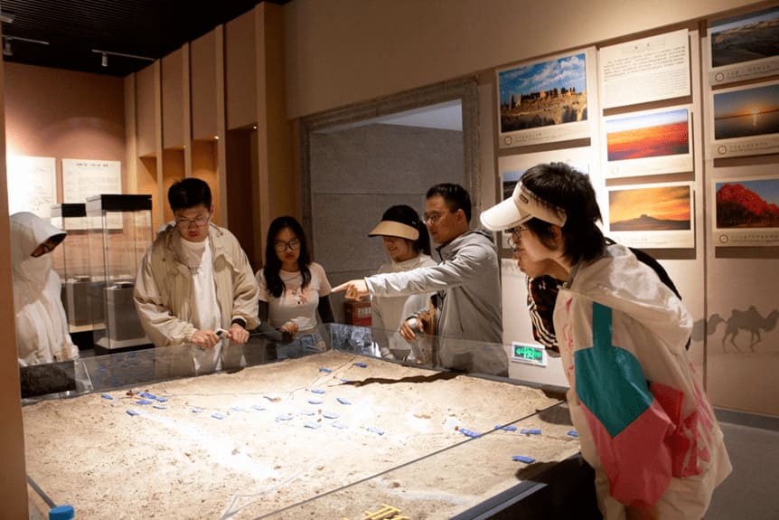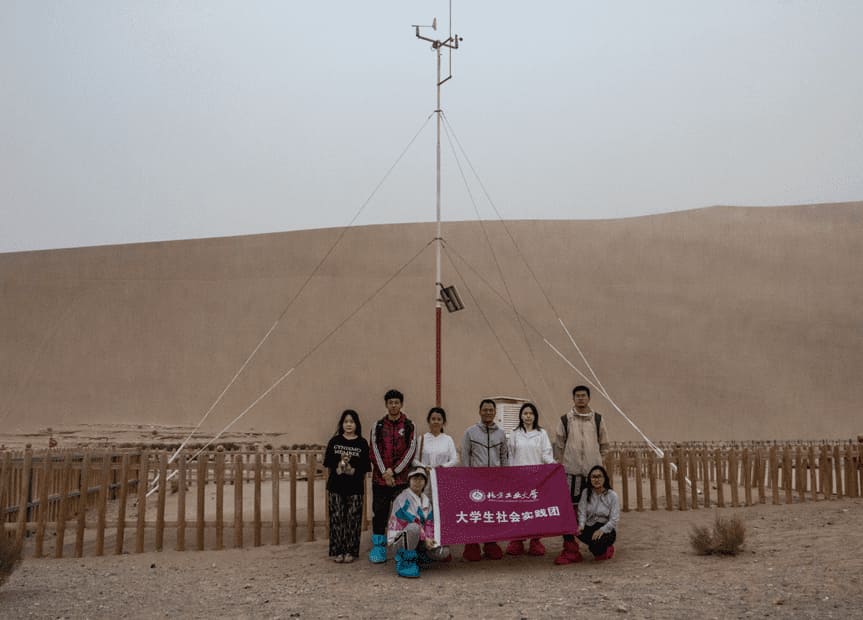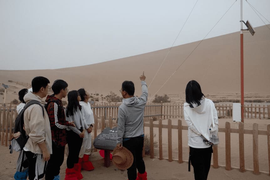 雷勵(lì)風(fēng)行實(shí)踐團(tuán)在楊和家老師和王免老師的帶領(lǐng)下了解敦煌現(xiàn)存歷史文化遺跡,首站是莫高窟。從莫高窟數(shù)字展示中心出發(fā),實(shí)踐團(tuán)成員深入了解了莫高窟承載了千年歷史的深厚底蘊(yùn)。接著調(diào)研了藏經(jīng)洞、九層塔等多個(gè)歷史時(shí)期開(kāi)鑿的洞窟,不同的壁畫(huà)展示了不同時(shí)代的歷史文化背景,讓成員們深刻感受到絲路文化的輝煌。完成對(duì)莫高窟的調(diào)研后,實(shí)踐團(tuán)來(lái)到了陽(yáng)關(guān)故址,參觀了陽(yáng)關(guān)研究所和陽(yáng)關(guān)古道等地,系統(tǒng)了解了陽(yáng)關(guān)遺址的原始用途和過(guò)去的故事。盡管遺址已經(jīng)在千年的風(fēng)沙中失去了原貌,只剩下斷壁殘?jiān)蓡T們?nèi)阅軌蚋惺艿焦湃擞乱闱斑M(jìn)的精神品質(zhì)。參觀結(jié)束后,實(shí)踐團(tuán)成員對(duì)敦煌的歷史文化底蘊(yùn)深感震撼,同時(shí)也增強(qiáng)了對(duì)中國(guó)傳統(tǒng)文化的自信與認(rèn)同。